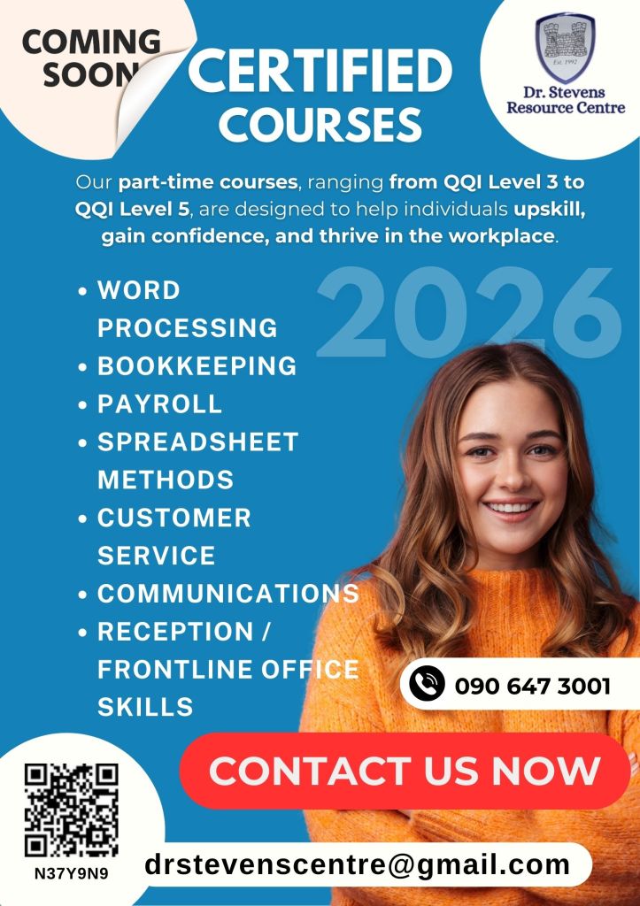 Spaces are limited, so don’t miss out! Sign up now and take the next step toward advancing your career! For more details or to register, contact us today: Phone: +353 90 64 73 001 / Email: drstevenscentre@gmail.com