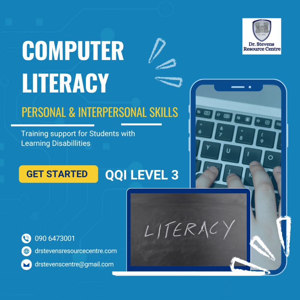 Dr. Stevens Resource Centre is pleased to offer a QQI Level 3 accredited course focused on Computer Literacy and Personal & Interpersonal Skills. This programme is designed to support students with learning disabilities, providing a tailored learning experience that builds confidence, capability, and independence.