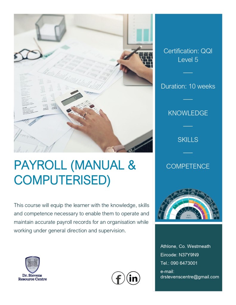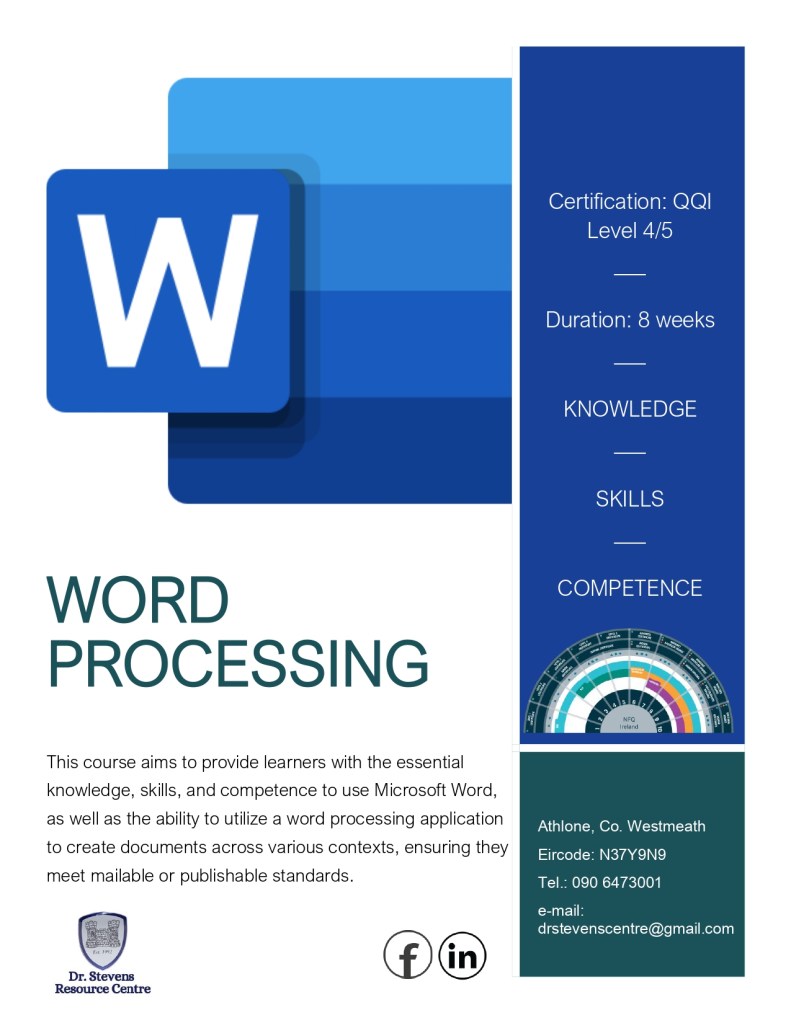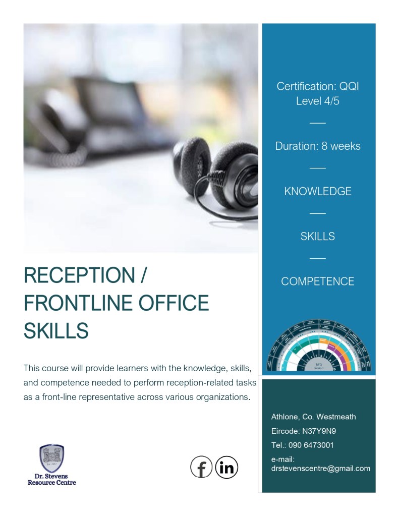 The Dr Stevens Resource Centre Community Employment scheme is designed to help people who are long-term unemployed (or otherwise disadvantaged) to get back to work. Participants are offered the opportunity to train, upskill or develop new skills, through a variety of training programmes run by the Centre. All training through the Centre is delivered within a QQI Quality Assurance framework and can lead to Major Awards on the National Framework of Qualifications. Funding is available for Certified training to assist you in upskilling for future employment prospects while on the CE scheme.